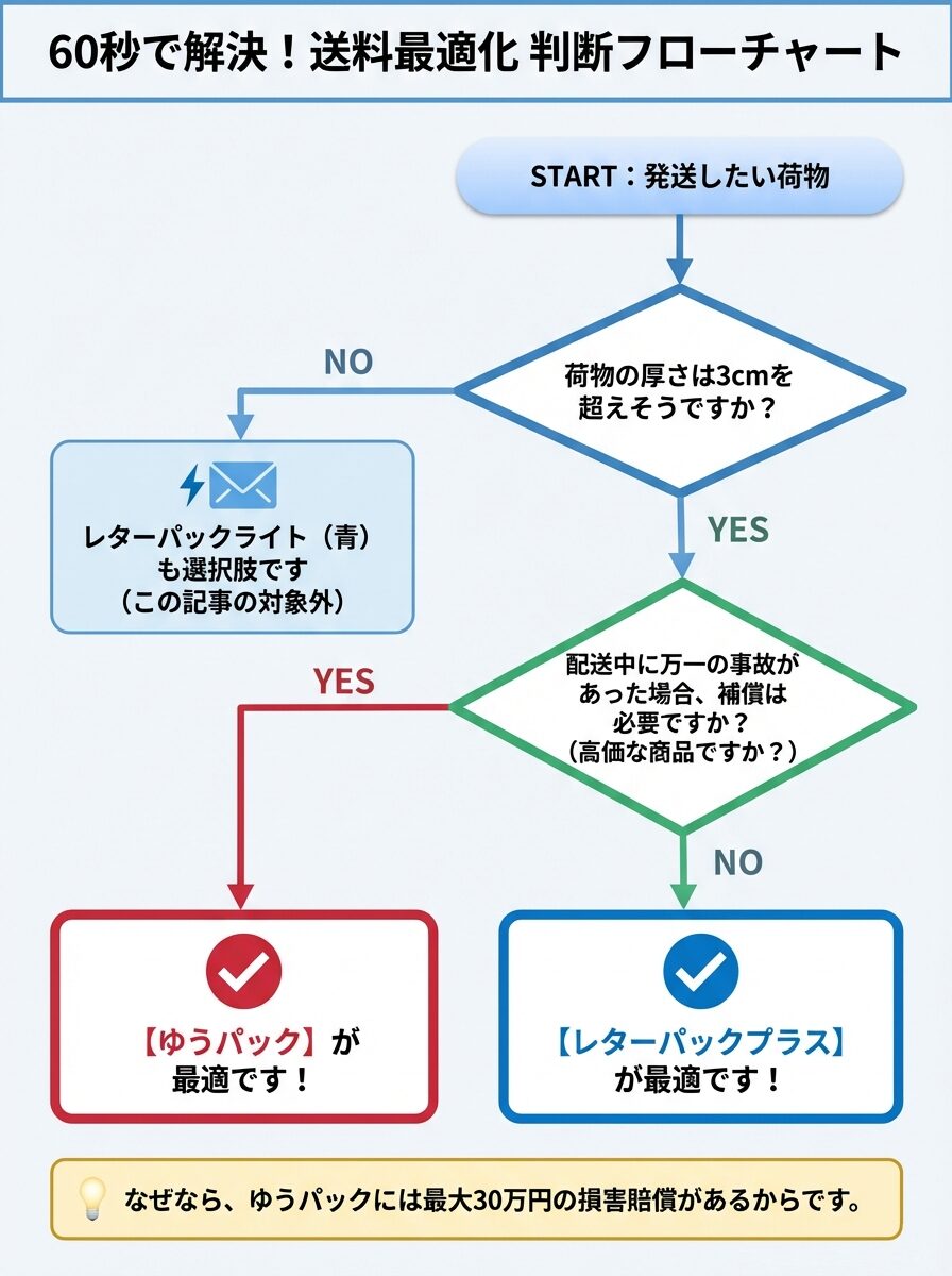 | 厚さ制限 | なし (封が閉まればOK) | 制限なし | あなたの悩みの原因はここで解消! |